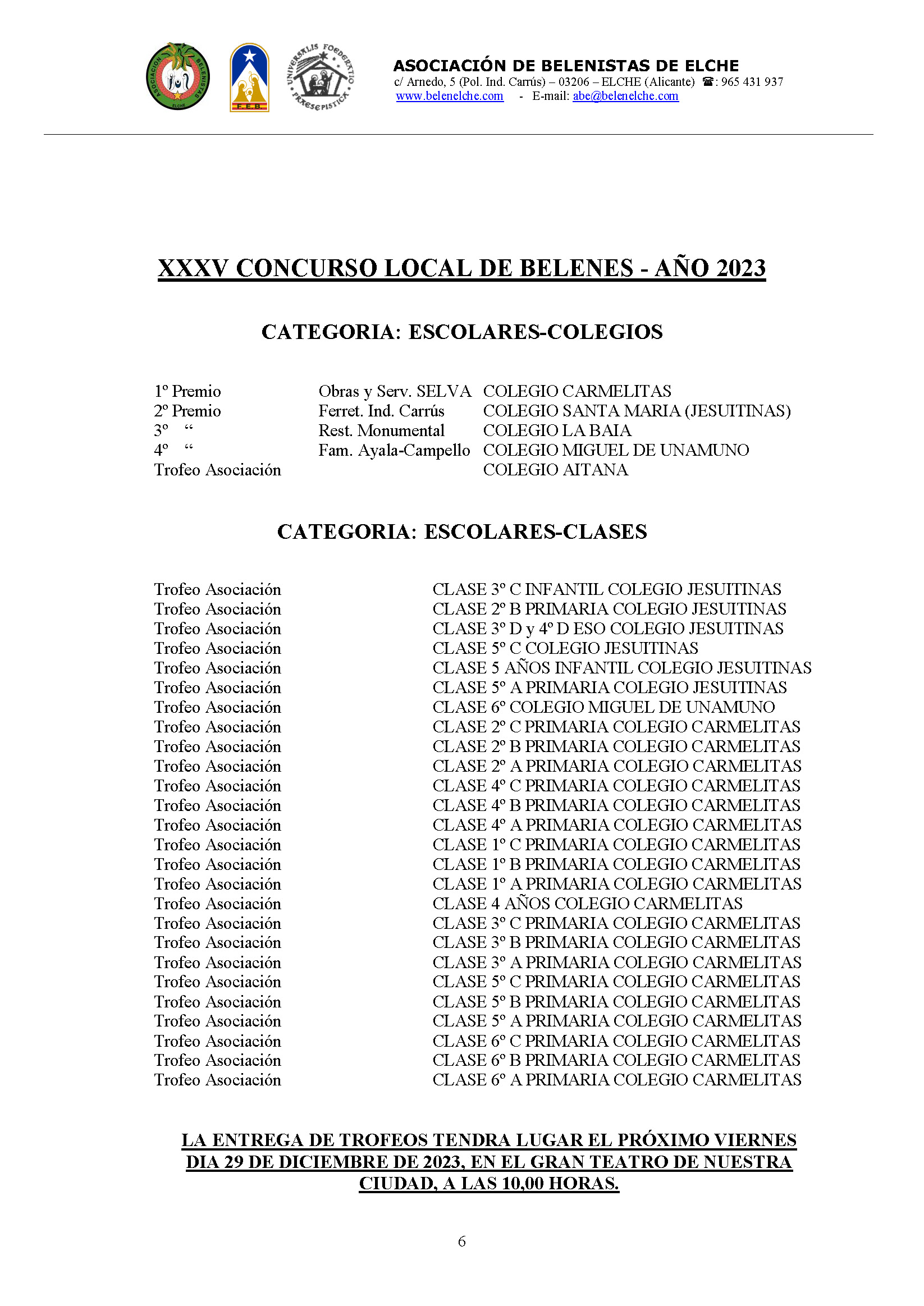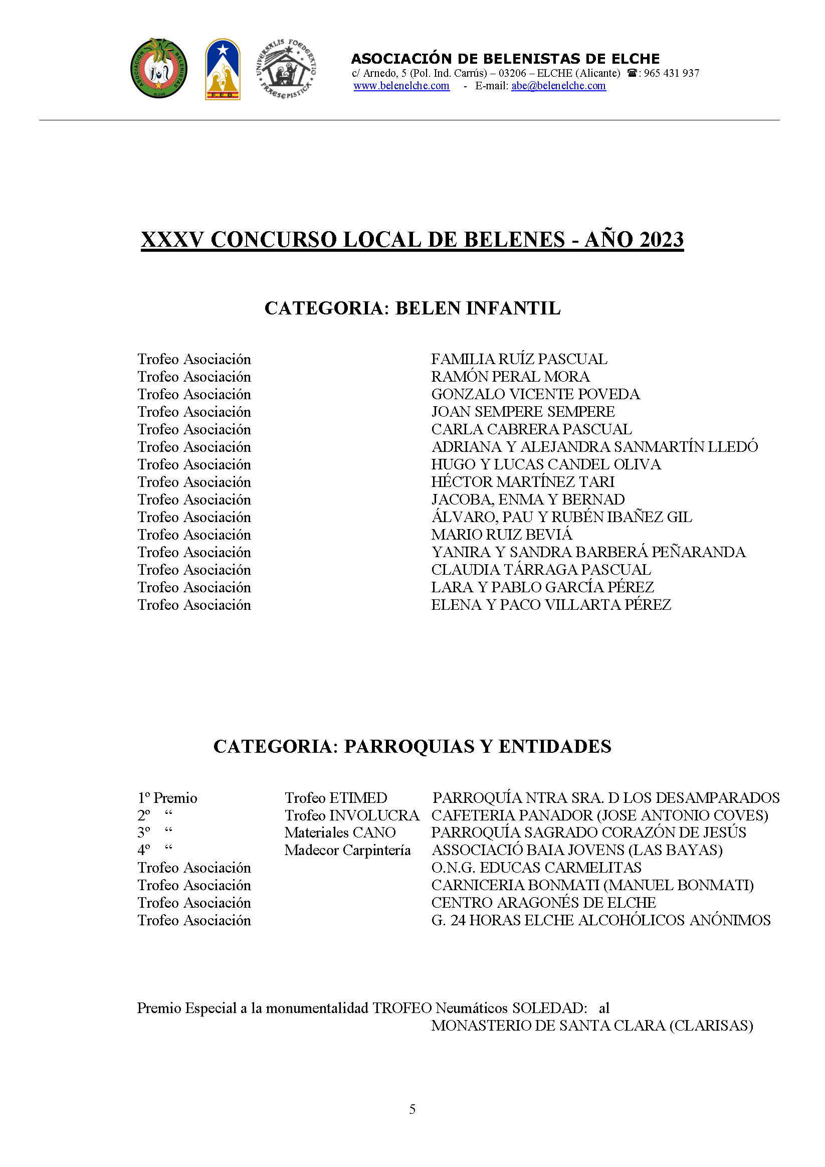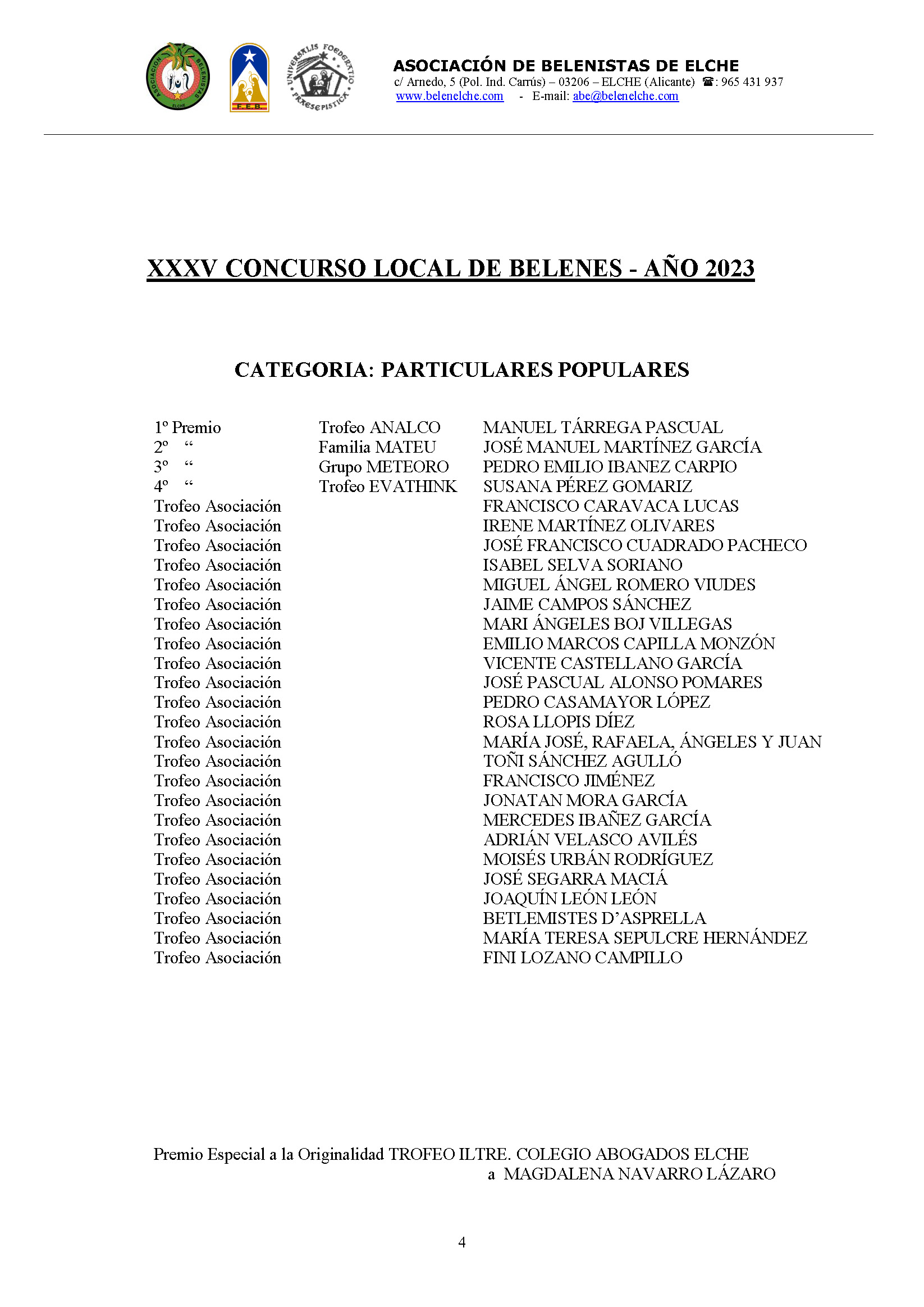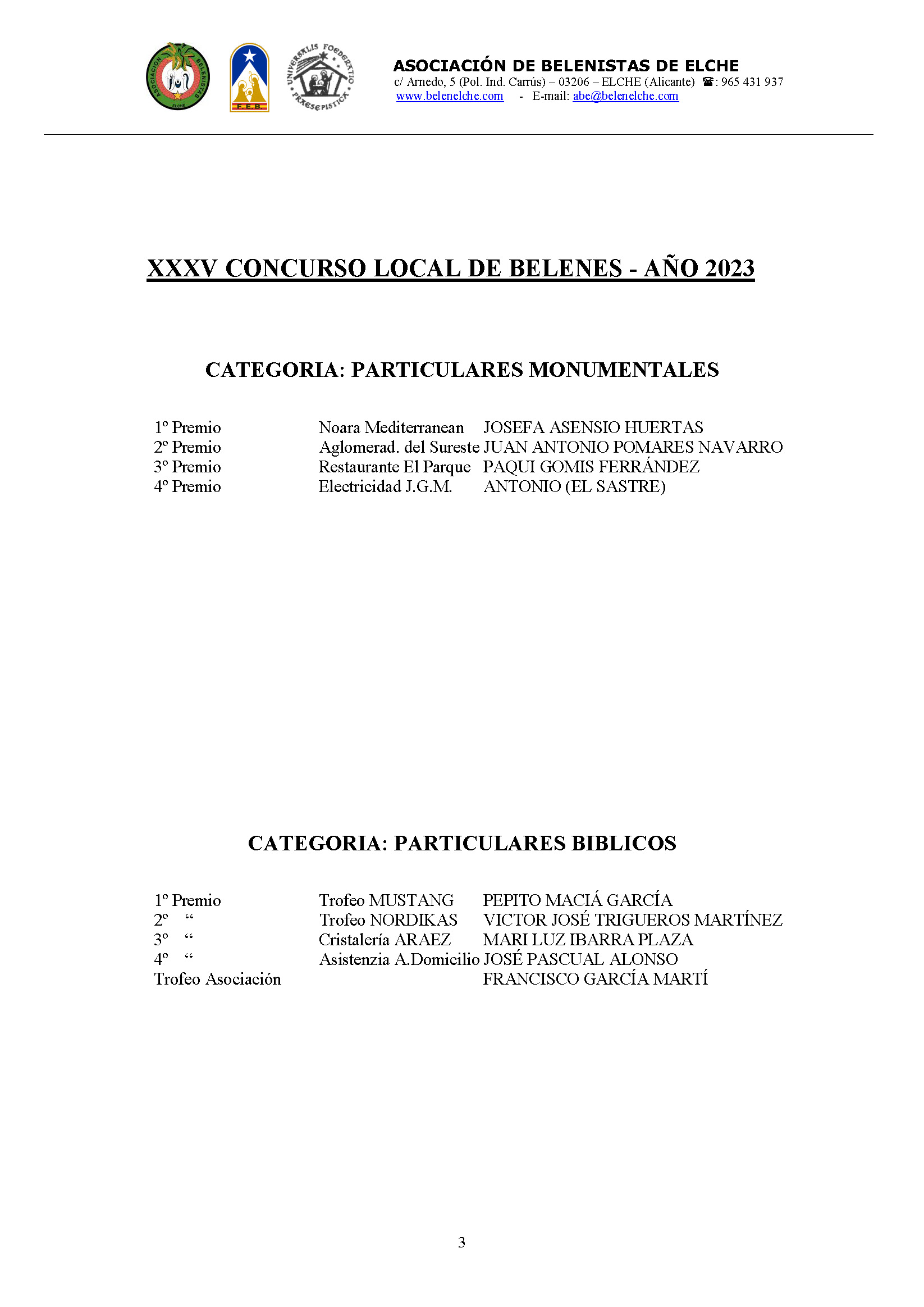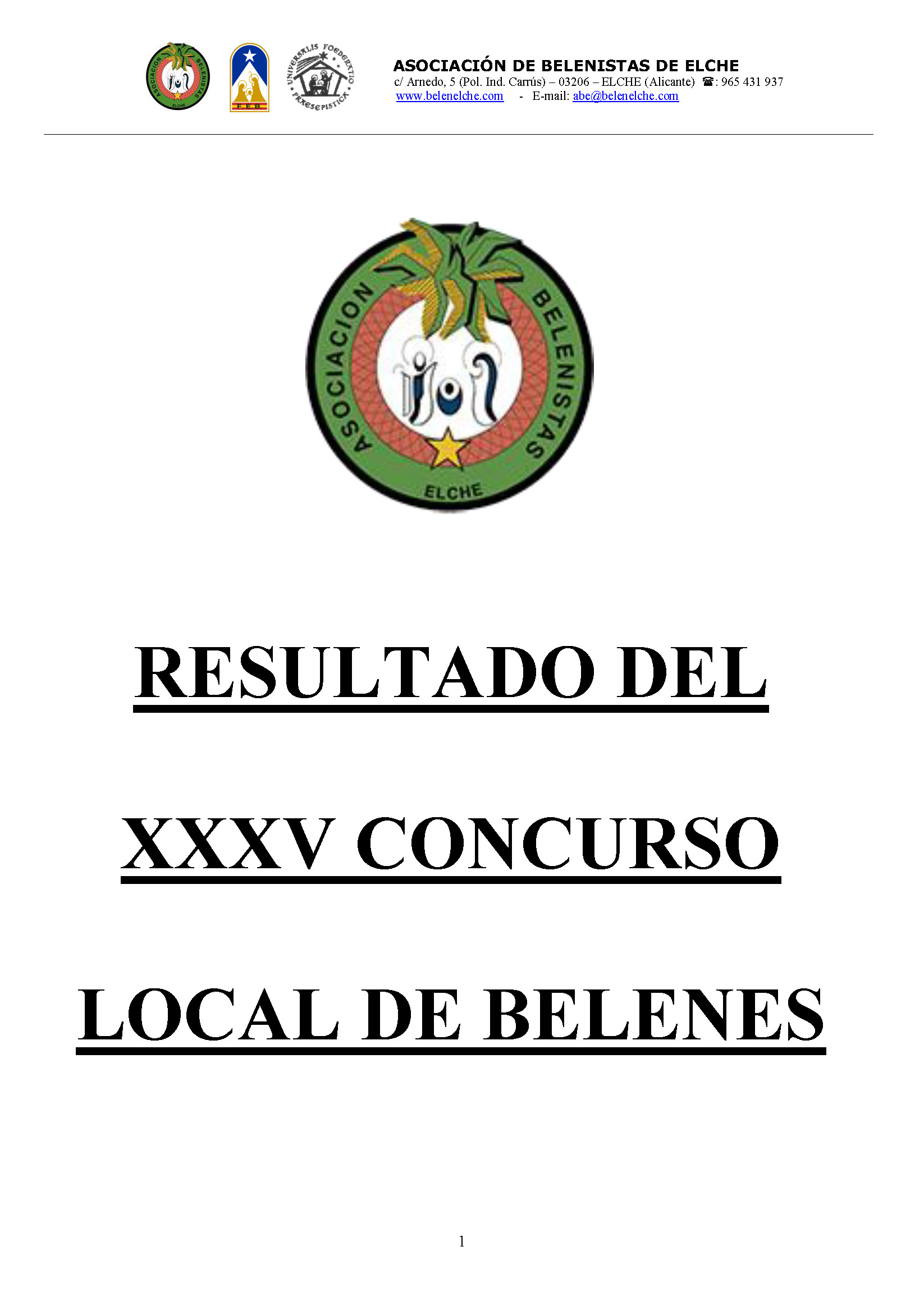 Ya tenemos los resultados del XXXV Concurso Local de Belenes. Gracias a todos por participar.